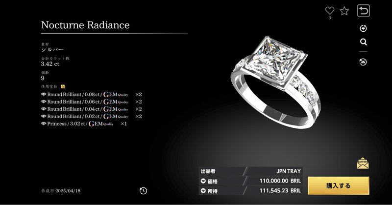 NFT宝石は、ゲーム内で他プレイヤーとBRILトークンで取引をしたり、デジタルジュエリーに加工して販売していくことが可能。